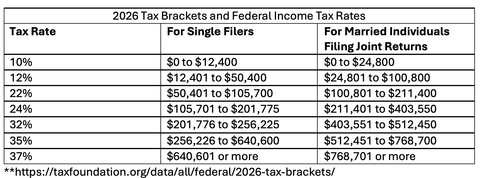 To illustrate this principle, according to the table above, if a single person made $60,000 in 2026, all their income above $50,401 would be taxed at 22%, which comes out to $2,112. But if that same person legally reduced their income to get below the $50,401 tax bracket, they would save $2,112.